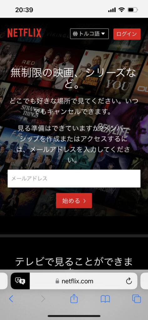 まずは下記のボタンをタップしてNetflixの公式サイトを開きましょう。